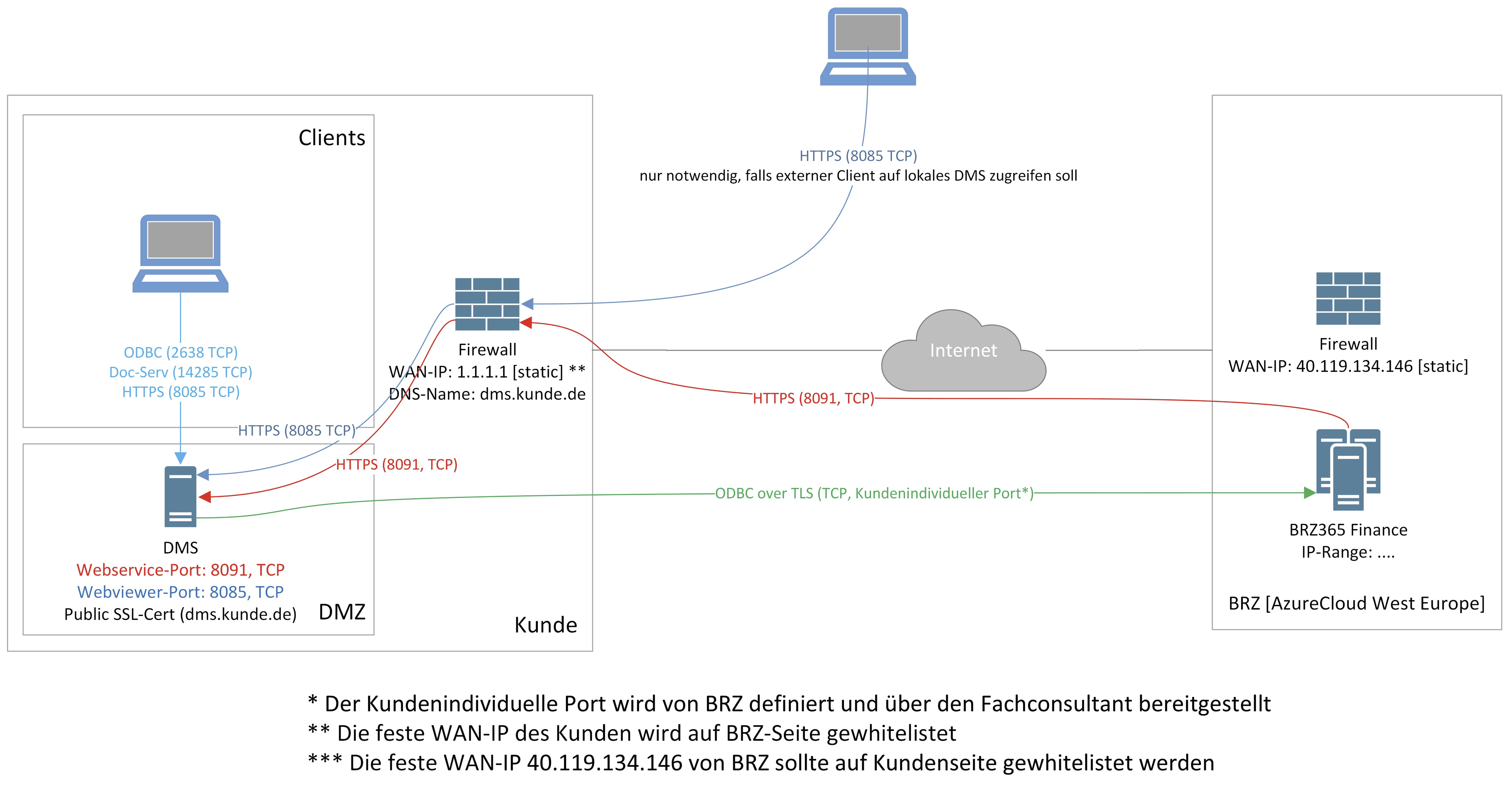 - DMS-Webservice: https://dms.kunde.de (extern, 8091 TCP) -> https://dms-servername:8091 (intern, 8091 TCP)