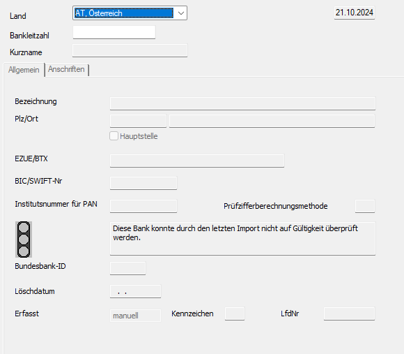 - die ausländische Bank muss gemäß des letzten Imports gültig sein