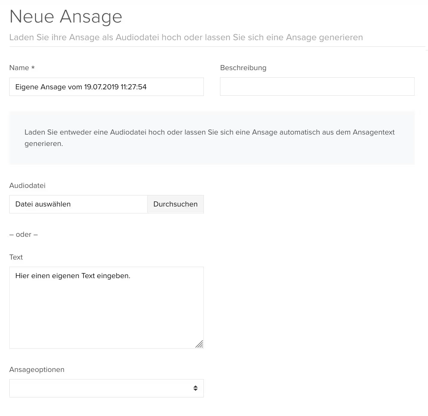 - Navigieren Sie zu Administration → Eigene Ansagen.