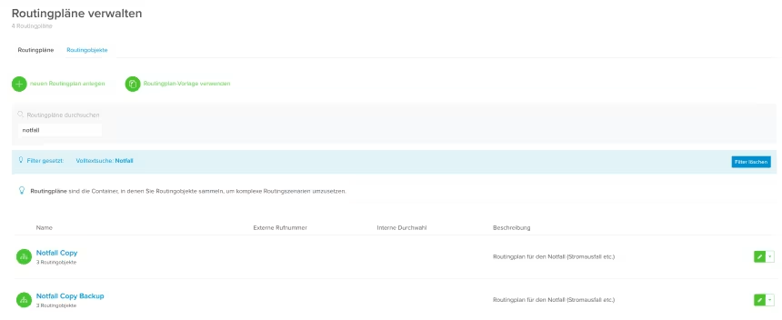 - Navigieren Sie in Ihrem Benutzerkonto zu „Telefonanlage / Administration“ > „Routingpläne“.