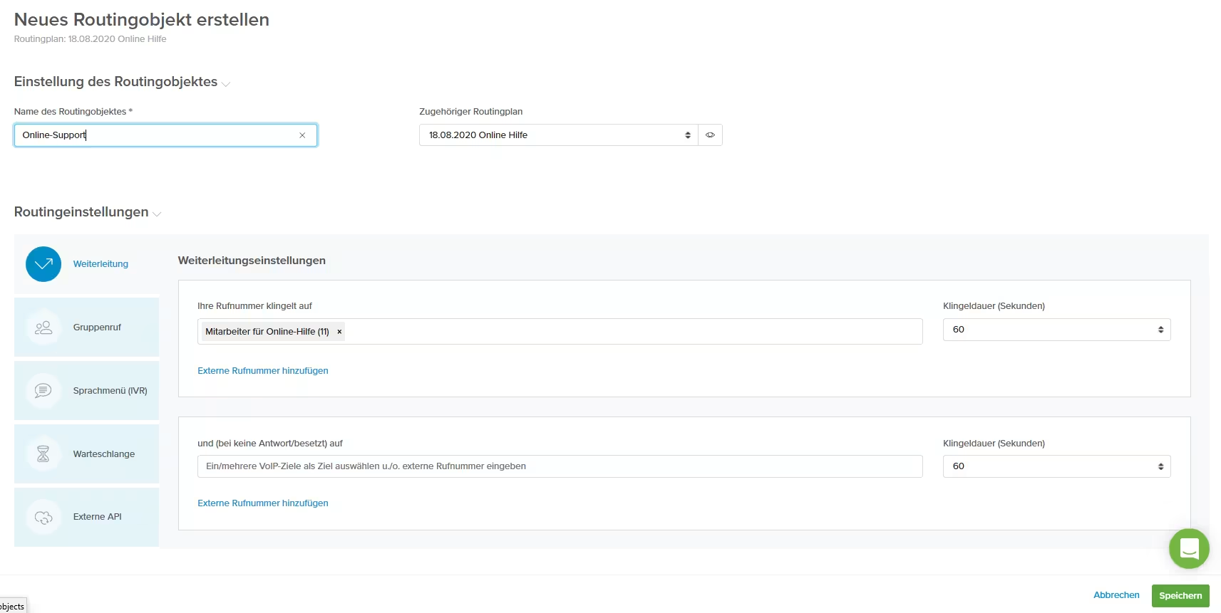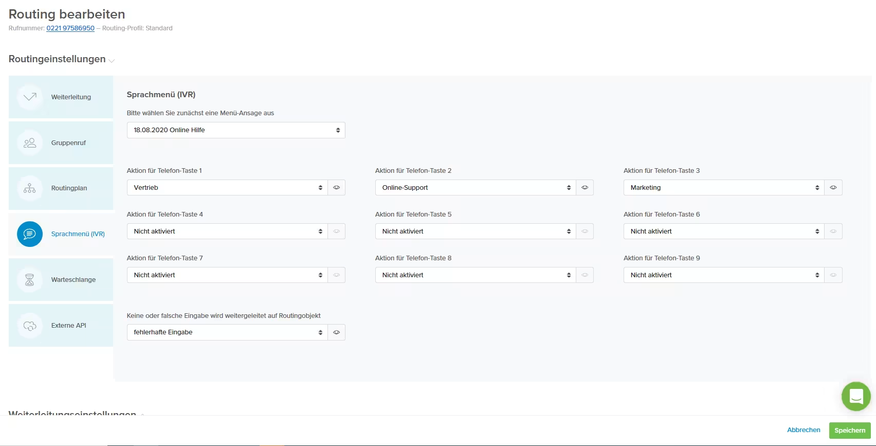 • Routingobjekt für fehlerhafte Eingaben anlegen (z. B. Weiterleitung zur Mailbox)