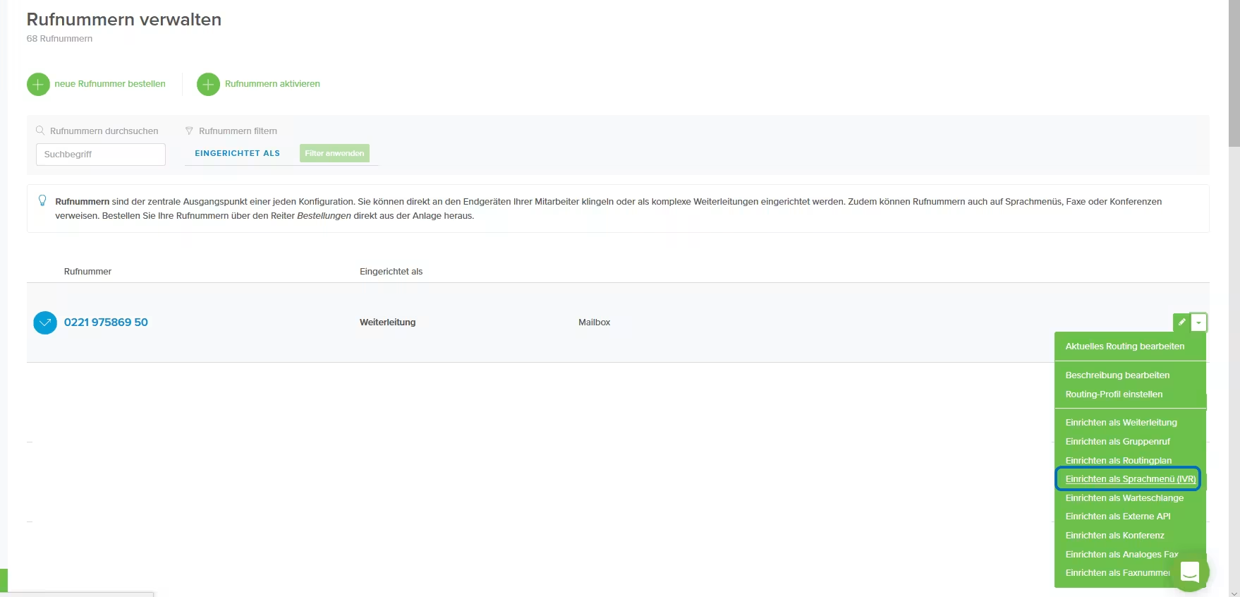• Rufnummer auswählen und als Sprachmenü einrichten