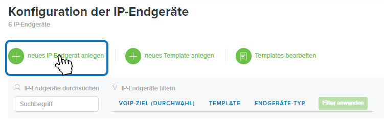- Klicken Sie auf neues IP-Endgerät anlegen.