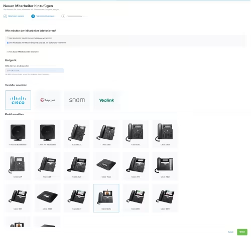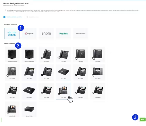 - Unterstützte Hersteller: Cisco, Poly, Snom, Yealink.