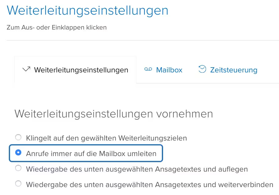 Mailbox bei Besetzt oder keine Antwort aktivieren: