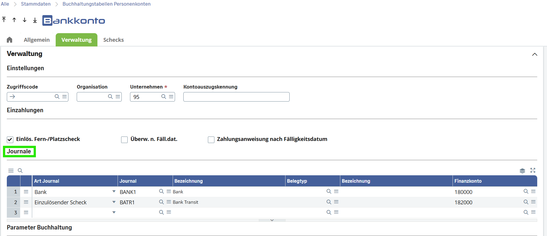 1. Bank: zugehöriges Journal und Belegtyp auswählen