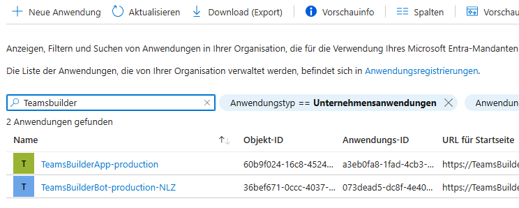 - Suchen Sie nach Teamsbuilder und klicken auf die Anwendungen (ggf. mehrere)