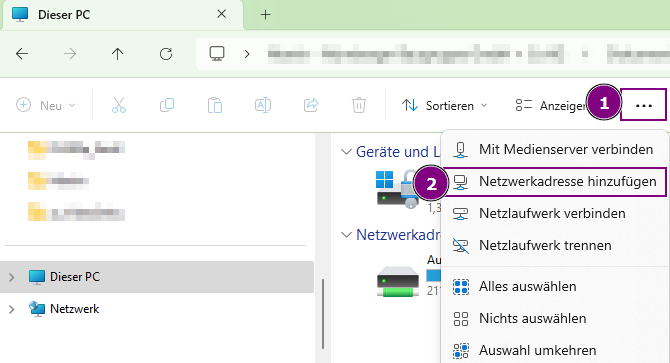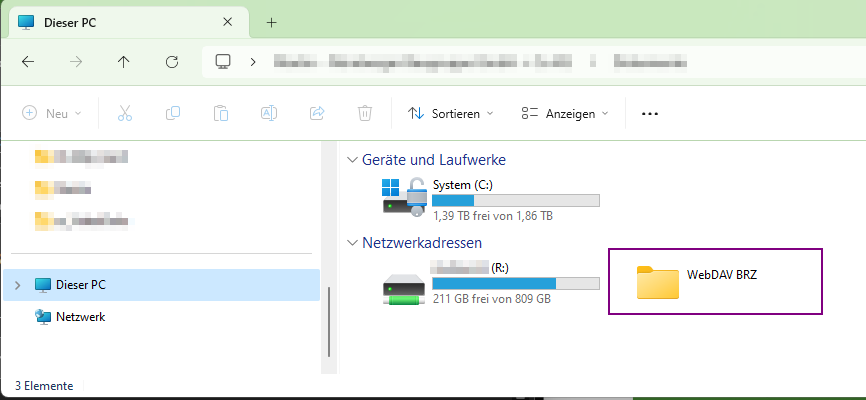 Mit WebDAV können Dateien bis ca. 90 MB direkt kopiert werden. Wichtig: Bearbeiten von Dokumenten im WebDAV-Ordner mit lokal installierten Anwendungen (z. B. Excel) ist nicht möglich.