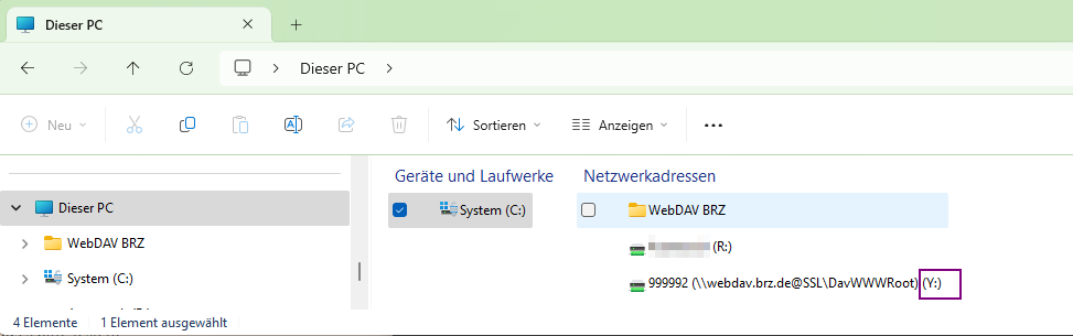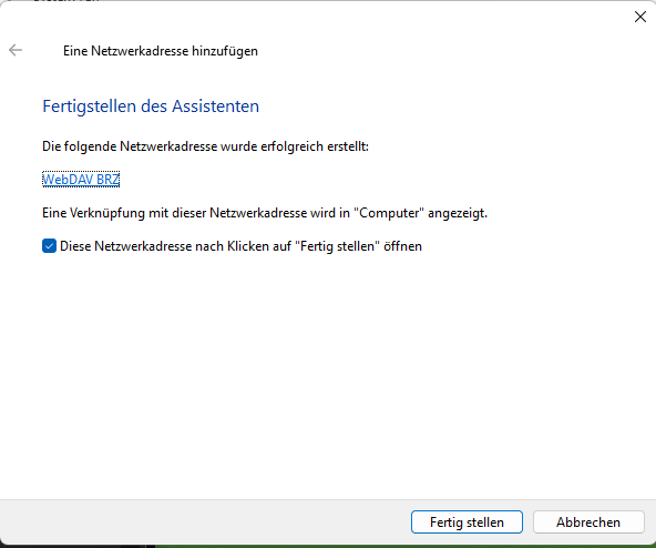 - Keine direkte Bearbeitung von Dateien im WebDAV-Ordner mit lokal installierten Anwendungen möglich.