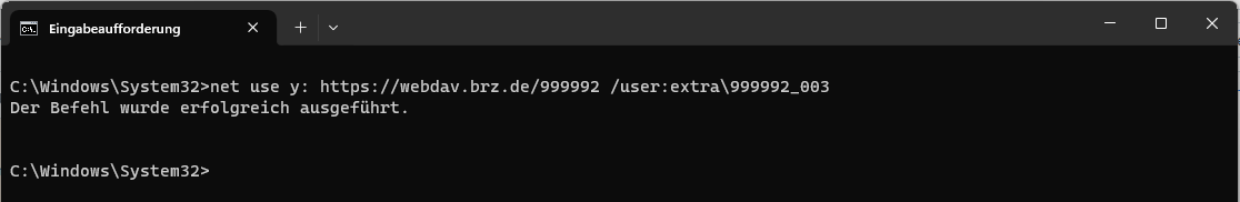 Über die Befehlszeile kann die Verbindung mit Benutzerangaben direkt an einen Laufwerksbuchstaben gebunden werden.