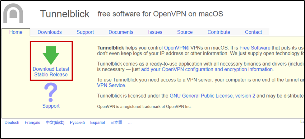 1. Tunnelblick herunterladen und installieren: Lade die App von der offiziellen Website herunter, öffne