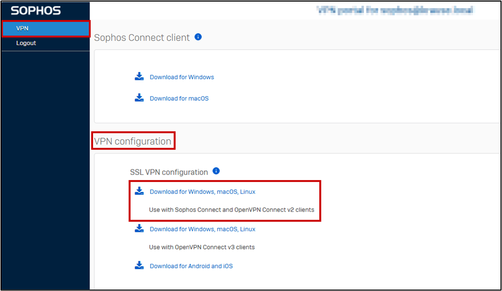 2. VPN-Konfiguration von der Sophos XG Firewall herunterladen: Öffne das User Portal, melde dich