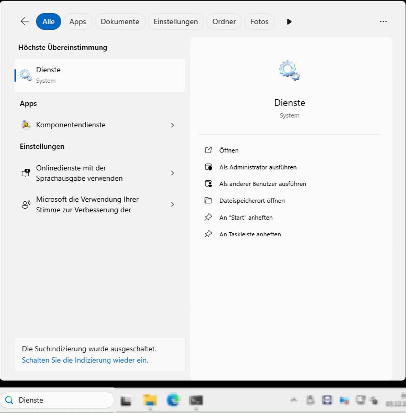 - Klicken Sie auf Start und geben Sie Dienste in die Suche ein.